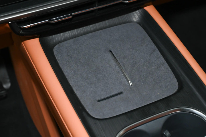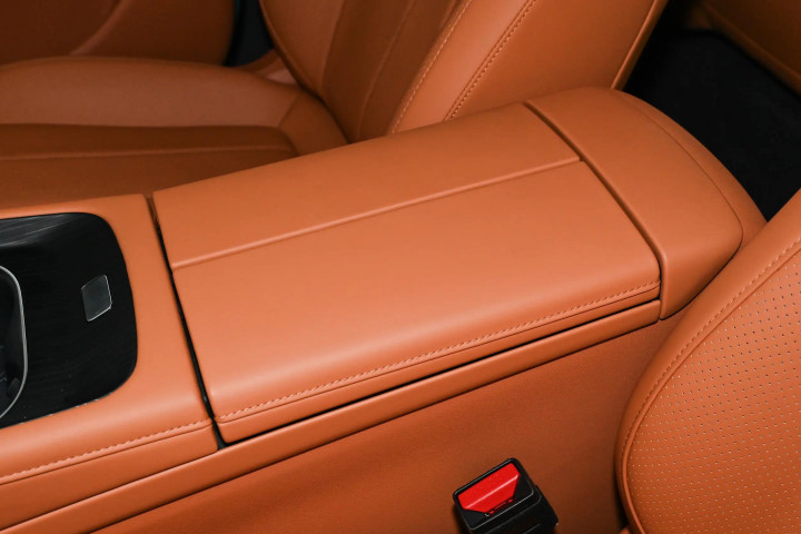 细节上的贴心设计不少。主驾头枕自带扬声器,导航播报时声音直接传到耳边,不会被音乐盖过,也不会打扰到后排的家人。全车有6个USB-C接口,前后排都能同时给手机、平板充电,再也不用抢充电头了。储物空间规划得也合理,门板上的储物格能放下两瓶矿泉水和一把雨伞,中央扶手箱深度足够,放得下我的墨镜、驾驶证和车载充电器,拿取很方便。