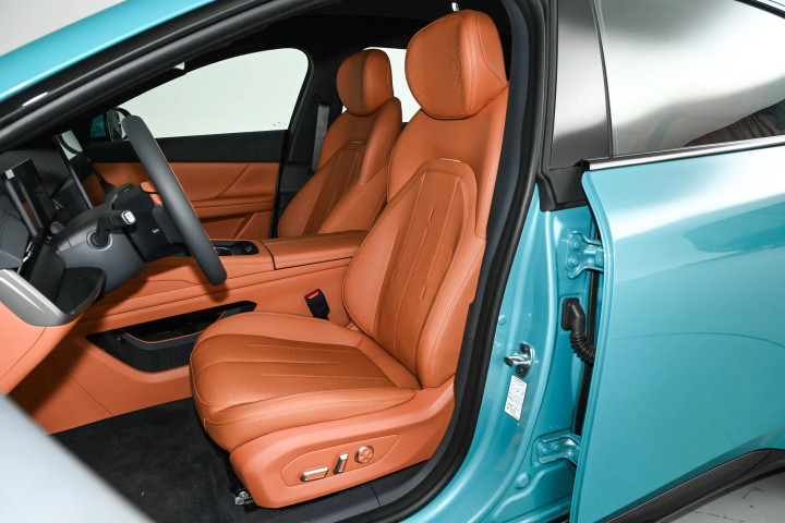 我选的是港湾蓝配色,这个颜色很特别,不是那种扎眼的亮蓝,在阳光下会泛出淡淡的光泽,有点像海边的晴空,特别耐看。晚上解锁车辆时,氛围灯会顺着车门轮廓缓缓亮起,电动尾翼也会自动升起,仪式感拉满。灯组的设计也有意思,开关车门时会有动态灯语,上次在商场停车场,远远就能通过灯效认出自己的车,比单纯的转向灯实用多了。